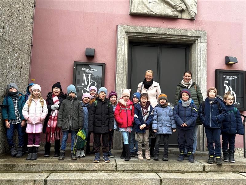 Am 27.01.26 machte die Klasse 2b sich auf den Weg nach Essen ins Grillotheater, um sich das Theaterstück „Pinocchio“ anzusehen. Mit großen Augen betraten die Kinder das festliche Theater und setzten sich in den obersten Reihen ganz gespannt hin und betrachteten noch eine Weile das Geschehen im ausgebuchten Theaterraum. Schließlich tauchten sie gemeinsam mit vielen anderen Kindern ab in eine märchenhafte Geschichte mit faszinierendem Bühnenbild und tollen Schauspielern. Die Kostüme waren aufwändig und extravagant und die Effekte auf der Bühne waren beeindruckend! Ein ganz toller Ausflug, der bestimmt lange in Erinnerung bleibt! Herzlichen Dank an den Förderverein für die Kostenübernahme des Busses. (K.Kubitza)